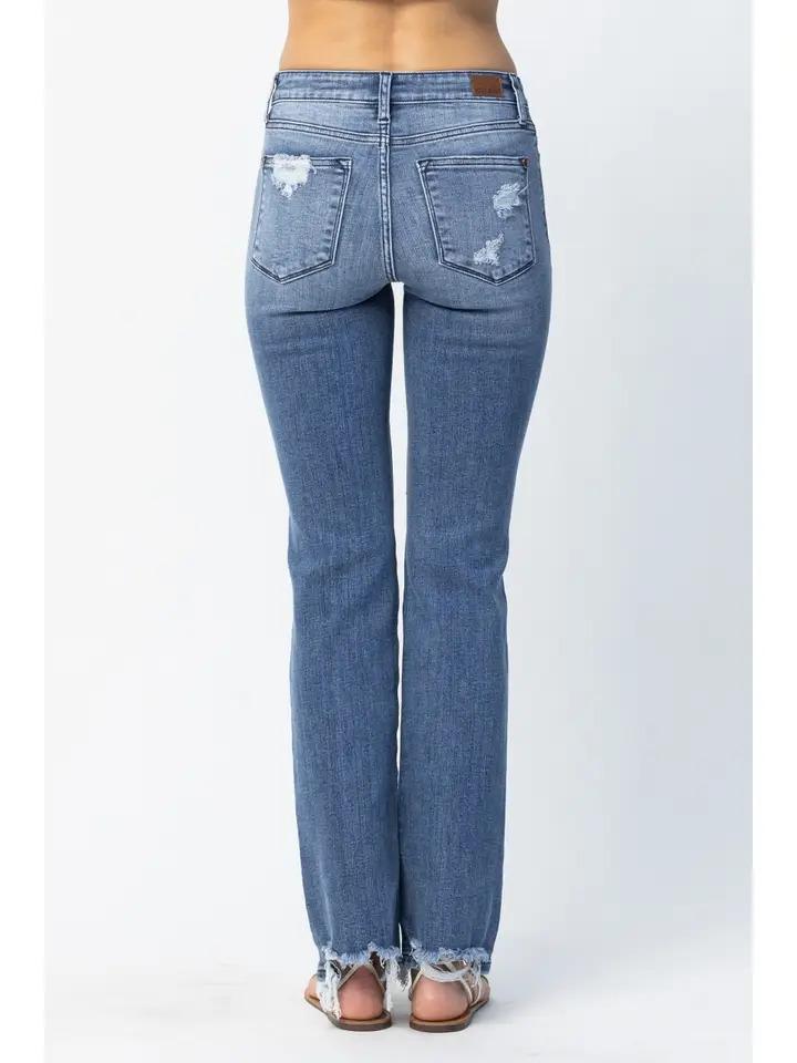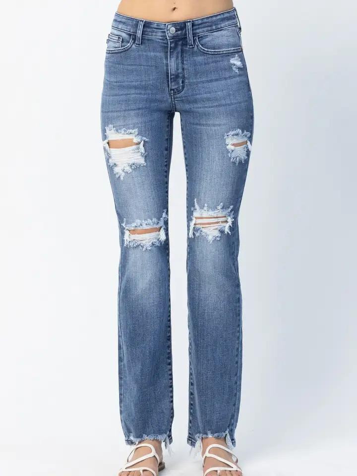 Distressed Mid Rise Straight - Med Wash - by Judy Blue