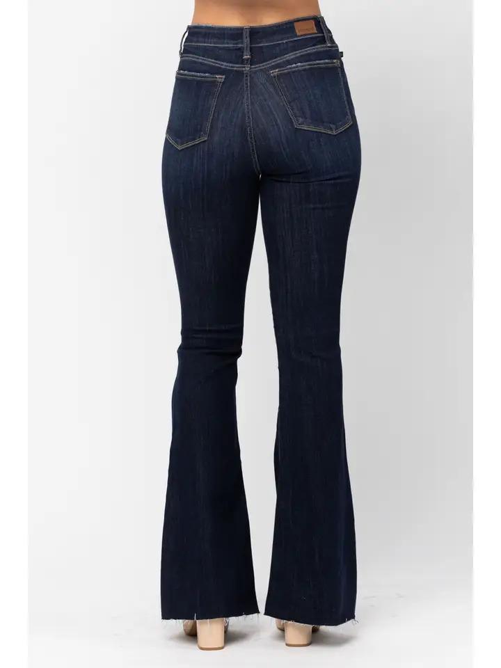 High Waist Raw Hem Flare - Dark Wash - by Judy Blue