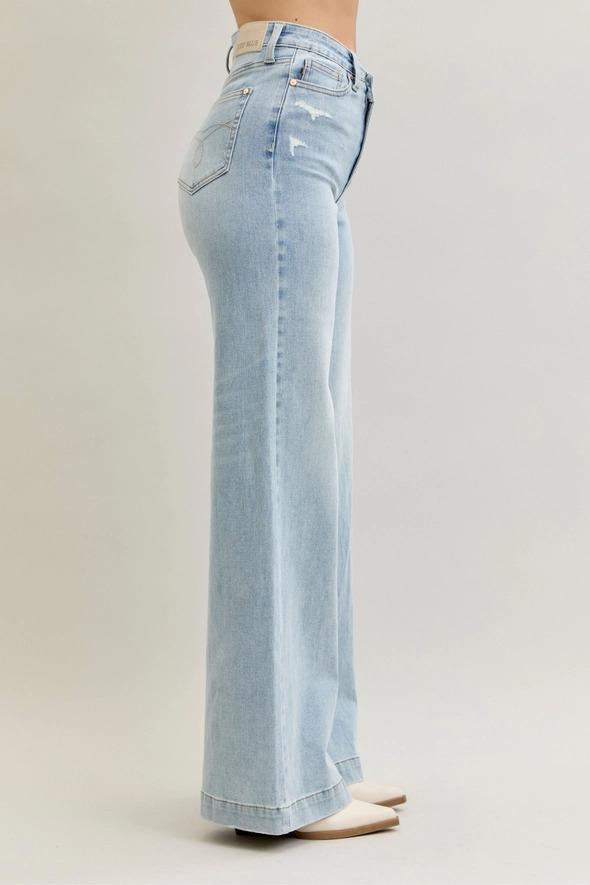 High Waist Retro Wide Criss-Cross - Light Wash - by Judy Blue