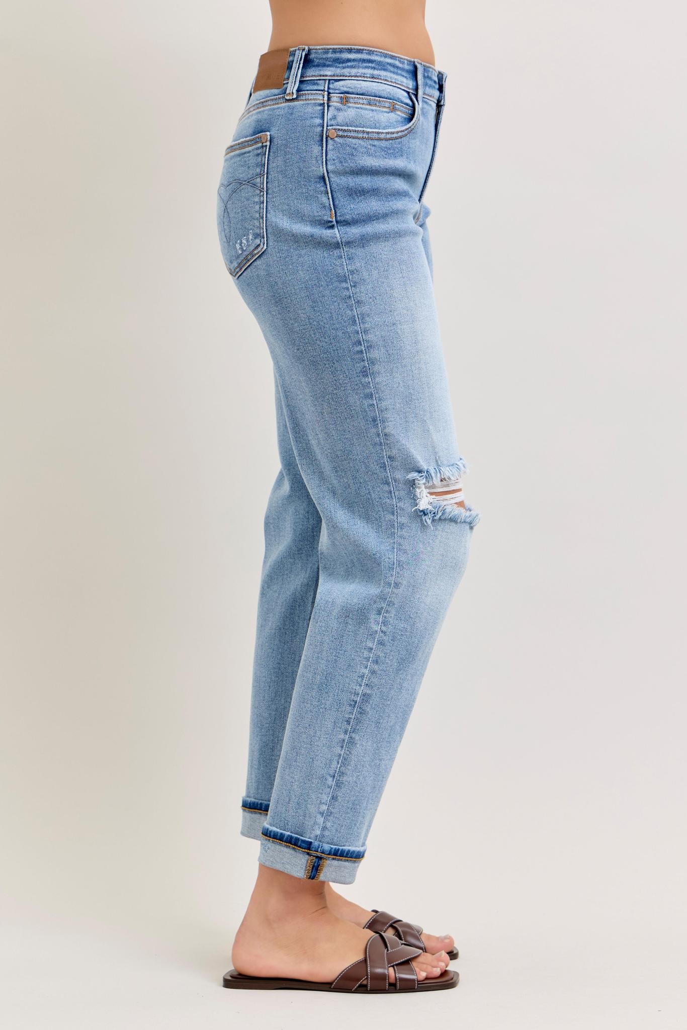 Mr. Bf Destroyed and Cuffed - Light Wash - by Judy Blue
