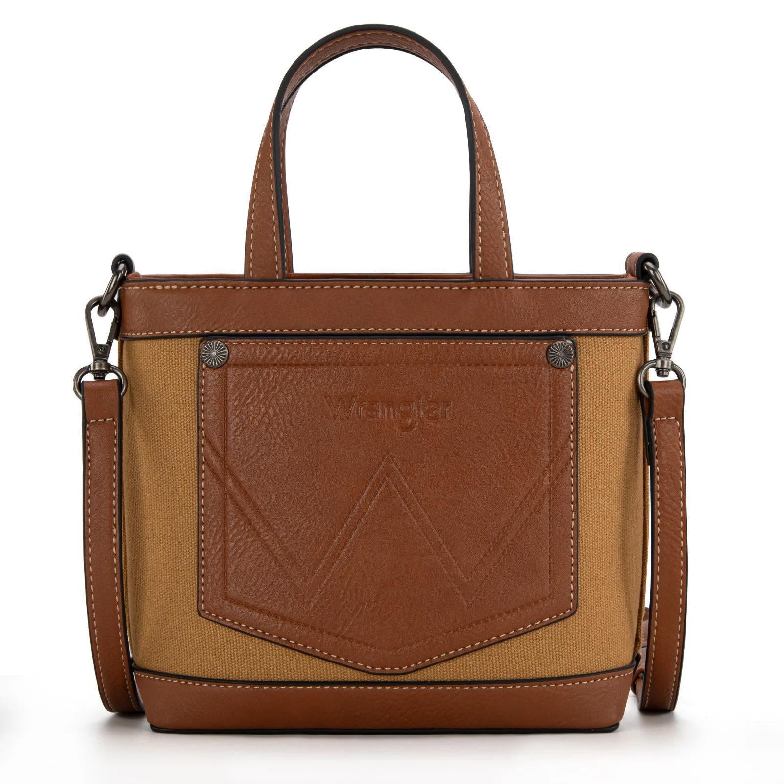 Wrangler Canvas Mini Top Handle Tote//Crossbody - Brown - by Montana West