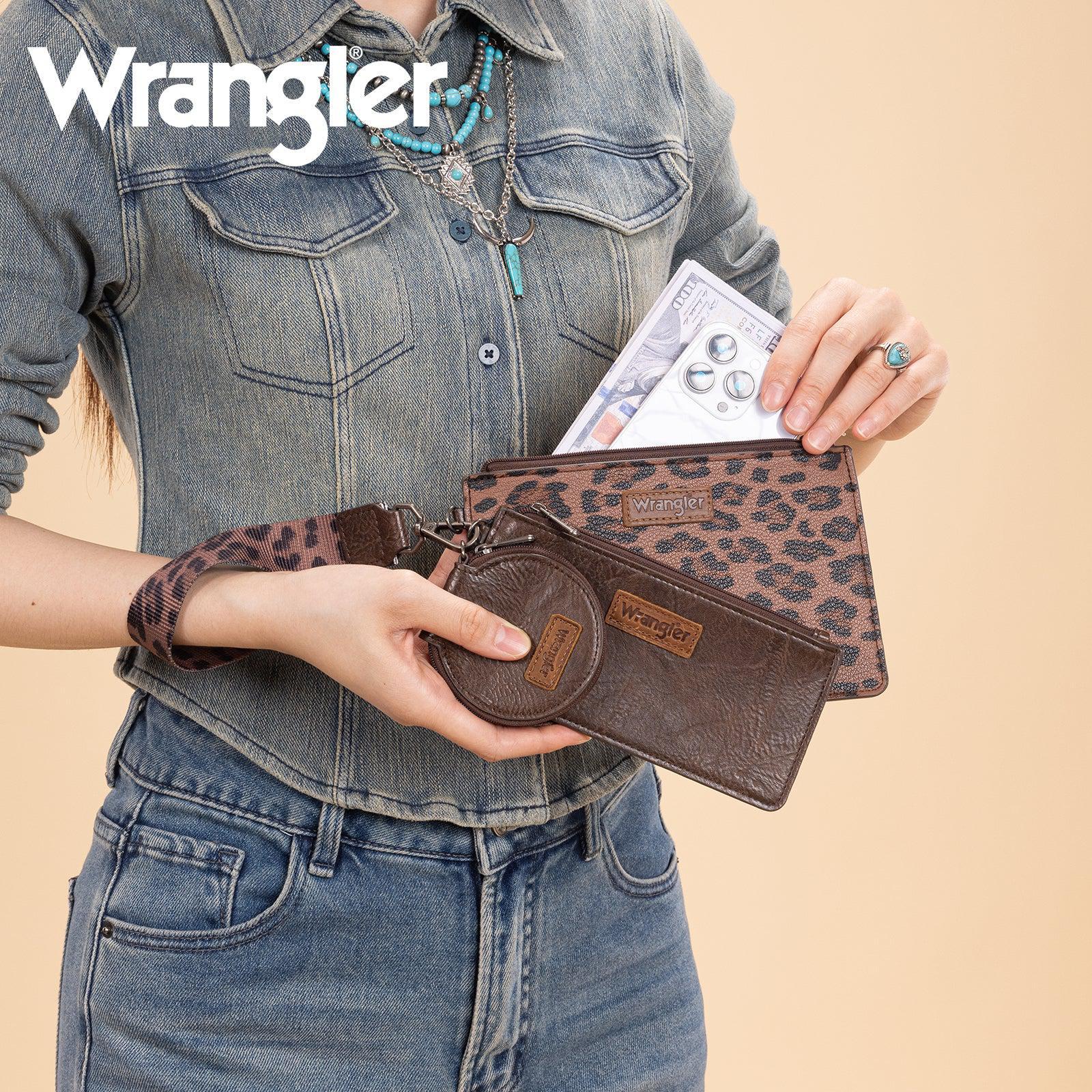 Wrangler Leopard Print Dual Pouch Wristlet with Zipper Round Case - Coffee Leopard - by Montana West